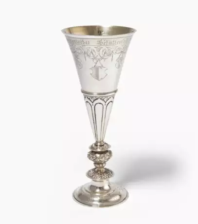 Silber, teilvergoldet. Werkstattmarke Bossard Luzern. "Central-Schweizerisches Schützenfest in Luzern 1889". Sehr selten. Feingehalt 875. H 24,2 cm, ca. 301 g.