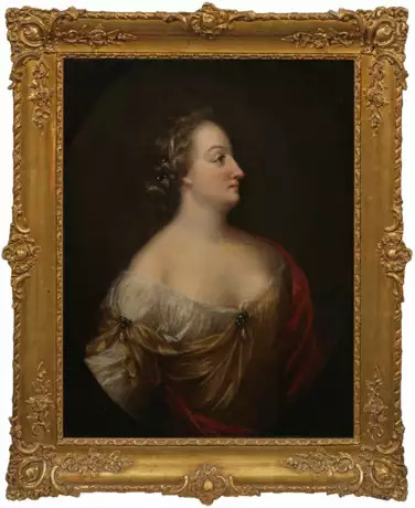 Repräsentatives ins Profil gesetztes Brustportät der jungen Königin in einem tief ausgeschnittenen, mit Perl- und Edelsteinschmuck besetztem Kleid, einen roten Umhang locker über die Schultern geworfen, ehem. für einen Ovalrahmen konzipiert. Bourdon war einer der Gründungsmitglieder der Académie royale de peinture et de sculpture in Paris, dessen Direktor er später wurde. Bekannt für sein ausgezeichnetes Bildgedächtnis und seine stilistische Vielseitigkeit, war es ihm möglich, viele Aufträge von religiösen und historischen Szenen, als auch Porträts und Landschaften anzunehmen, deren erfolgreiche Erfüllung ihm ein hohes Ansehen einbrachten. In den Jahren 1652-1654 hielt er sich in Stockholm, als Maler am Hof von Königin Christina auf, wo er hauptsächlich Porträts schuf. Öl/Lwd.; Rücks. bez., bet. und sign. „Christina/Sued: Regina/Aetatis 25/Nr. 9/A.1651.Seb: Bourdon/Pinxit“. Rest.; 79 cm x 64,5 cm. Rahmen.