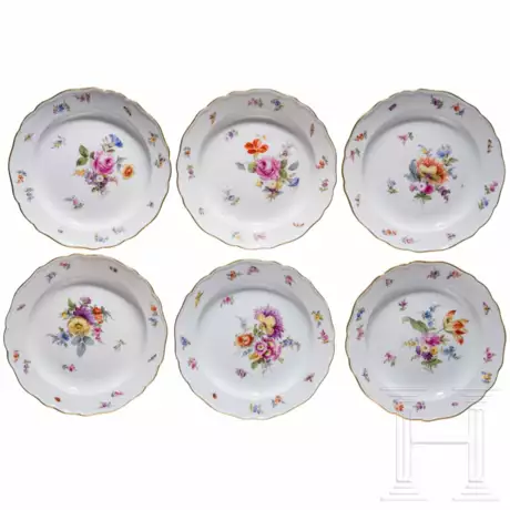 Lot 7477 | Sechs Dessertteller mit Blumen und Insekten, Meissen, um 1850/60