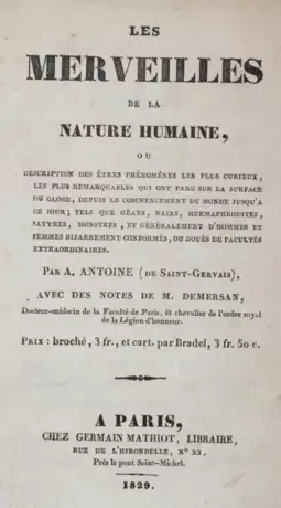 Erste franz. Ausgabe. - Buchblock etw. angebrochen. Exlibris. - ╔Dabei: Antoine,A.╗ Les merveilles de la nature humaine... Paris, Mathiot 1829. Mit 4 (von 6) Kupfertaf. Ohne die Tafeln 5 u. 6. - ╔Lisfranc,J.╗ Clinique chirurgicale de l'Hopital de la Pitie. Bde. 1-2 (von 3). Paris, Bechet 1841-42. - ╔Sicard,A.╗ Nouveau mode de pansement des plaies et blessures. Paris u. Marseille 1840. Mit 4 auf 3 Taf. - ╔Vavasseur,P. u.a.╗ Nouveau formulaire pratique des hopitaux, ou choix de formules... 3. ed. Paris, Crochard 1838. - Zus. 6 Bde.