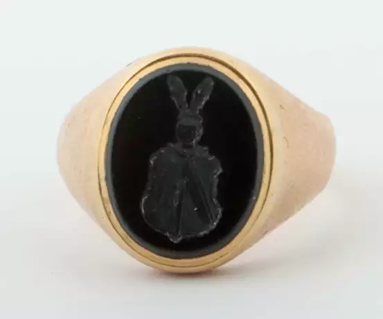 Lot 1352 | Siegelring Anfang 20. Jhr., Gelbgold 585, mit Onixplatte und gravierte…
