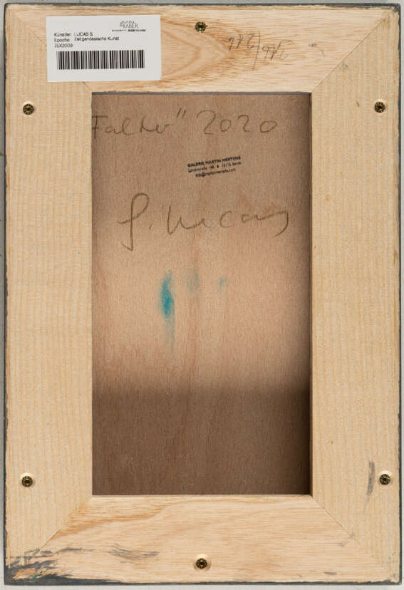 Fest im Schattenfugenrahmen montiert, zur Katalogisierung nicht ausgerahmt. Mit winzigen Farbabplatzungen oben am linken Rand und an der unteren rechten Ecke sowie mit haarfeinen Frühschwundrissen in der pastosen Farbe, sonst sehr gut.