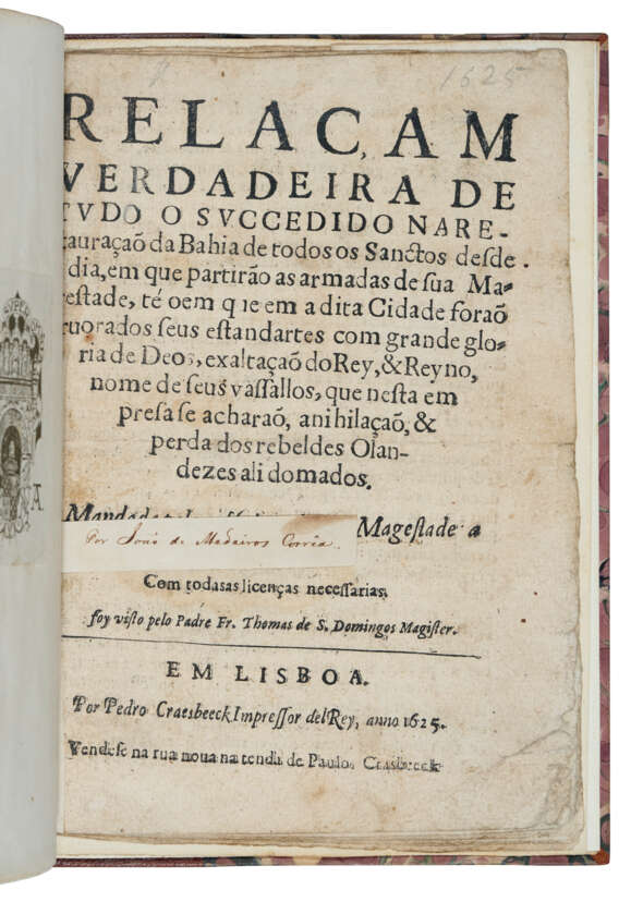 1. [CORRÊA, João de Medeiros (fl. 17th-century)]. Relaçam verdadeira de tudo succedido na restauraçaõ da Bahia. Lisbon: Pedro Crasbeeck, 1625.