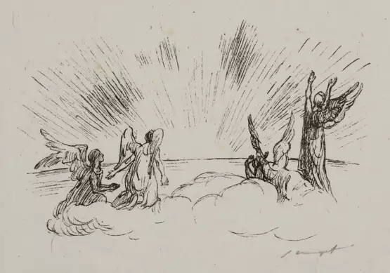 ╔Der Ambrosianische Lobgesang.╗ - Söhn 218. - ╔Schlussvignette╗ zu: "Ein Bilderbuch". - Söhn 228. - Mit unterl. Fehlst. i.d. Darst. - ╔Darstellung mit Clown.╗ - Faustszene mit ╔Mephisto in Auerbachs Keller.╗ - Etw. gebr.