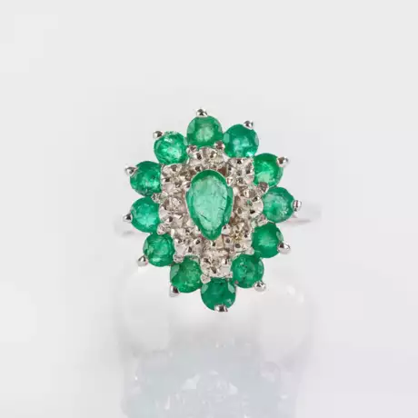 Lot 142 | Smaragd-Ring mit Kleinstdiamanten.