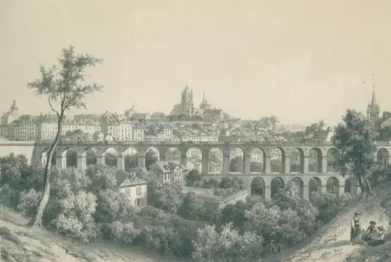 Vorhanden: 1. Genève, Deroy nach Guesdon; 2. Vue du grand Pont à Lausanne, prise de Montbenon, Deroy nach Deroy; 3. Vevey, Deroy nach Deroy; 4. Neuchatel, Deroy nach Deroy; 5. Château de Chillone, Lac de Geneve, Deroy nach Deroy; 6. Hospice du Simplon, Route du Simplon, Deroy nach Deroy; 7. Loeche les Bains et le glacier de la Dala, Canton du Valais; 8. Le pont du diable, Route St. Gothard, Deroy nach Deroy; 9. Grindelwald, Hotel de l'Ours, glacier inférieur, Ciceri nach Deroy; 10. Berne, Deroy Pére; 11. Vue de Thoun, Deroy/Muller; 12. Interlaken, vuer prise du belvedere (mit Jungfrau und Untersee), Deroy nach Deroy; 13. Le Well et Wetterhorn et le glacier de Rosenlaui (Canton de Berne), Muller nach Schmegeler Sohn; 14. Le Giesbach, Deroy nach Weglin; 15. Zürich, vue prise de la Weid, Deroy nach Deroay; 16. St. Galle, Müller; 17. Chûte du Rhin, près Schaffouse, vue prise de belle vue, Deroy nach Deroy; 18. Vue générale de Lucerne, vers le Mont Pilate, d'aprés une photographie, Müller; 19. Vue du Monument à Lucerne, érigé à la mémoire des Suisses qui ont combattu à Paris le 10 Août 1792, Deroy nach Deroy; 20. Chapelle de Guillaume Tell, Cicéeri; 21. Vue du Grütli, prise du Sonnenberg, Canton d'Ury, Müller; 22. L'Hotel du Righi Culm, les touristes surpris pa la neige, Deroy nach Deroy; 23. Le bains froids, sur le Rigi, Müller nach Schmegeler Sohn; 24. Fribourg, Vue du Grand pont, Deroy nach Deroy; 25. Bàle, Vue prise vers le Casino, St. Martin nach Deroy. - 22 der Lithographien wurden von Jules Springer, Paris, verlegt die übrigen von Wild, Paris. Die meisten Lithographien sind getönt. - Schwach gebräunt.