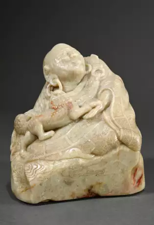 Lot 1386 | Soapstone figure ‘Seated Luohan in kasaya with you…