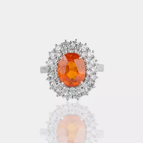 Lot 136 | Spessartin Granat Ring mit Brillant-Besatz.