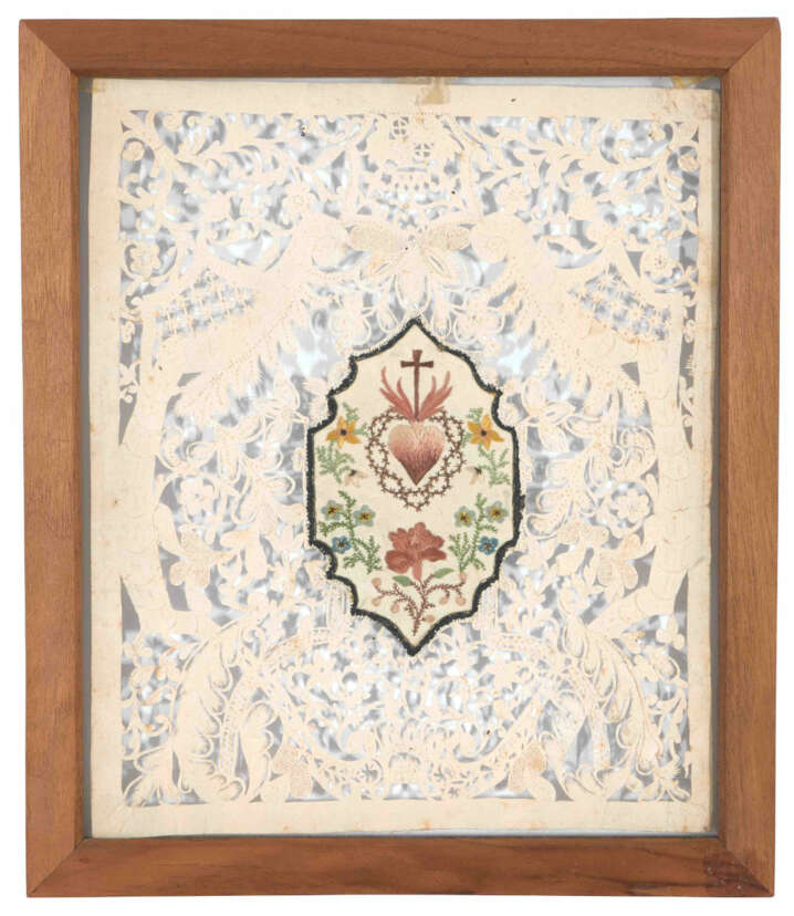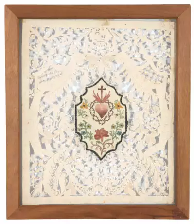Lot 3124 | Spitzenbild mit Seidenstickerei "Herz Jesu"
