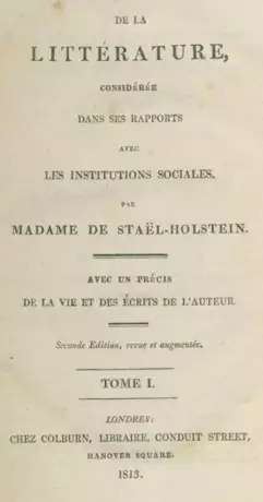 Vgl. Lonchamp 38; Schazmann 52 (beide die Erstausgabe von 1812). - Sauberes, nur leicht stockfl. Ex. - Dabei: Stael-Holstein,(G.)de. De l'Allemagne. Seconde édit. 3 Bde. Paris, Nicolle u. Mame 1814. Hldrbde. d. Zt. mit Rsch. u. Rverg. (Berieb. u. best.). - Lonchamp 95. Sechste (2. Pariser) Ausgabe. - Etw. stockfl. - Diesselbe. Oeuvres, 3 Bände Paris 1858. Hldrbde. d. Zt. - Zusammen 8 Bände.