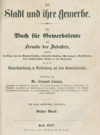 Sehr seltenes Werk (über KVK nur 3 Ex. nachweisbar !).- Enth. Kapitel über: Gewerbstoffe (Urstoffe, aus dem Mineralreiche, aus dem Pflanzenreiche, aus dem Thierreiche); Die den Gewerben dienstbaren Kräfte; Die Werkzeuge der Gewerbe; Die Werkstätte.- Mit e. Sachregister erschlossen.- Nur gering gebräunt oder fleckig.