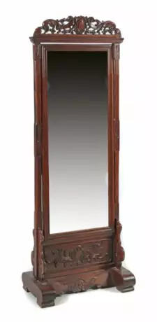 Lot 2418 | Standspiegel China, 20. Jh., Hartholz, in der Front partiell floral b…