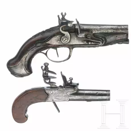 Lot 6390  | Steinschloss-Reisepistole und Steinschloss-Terzerol, Anfang 19. Jhdt.