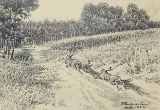 Deutscher Tier- und Landschaftmaler, Illustrator. - Über den Maler Victor Stoetzner-Lund (1883-1947), der nach dem Krieg weitgehend in Vergessenheit geraten ist, ist wenig bekannt. Er lebte in Berlin, wo er wohl zwischen 1924 und 1935 die Hintergründe der großen Tierdioramen am Zoologischen Museum des Museums für Naturkunde malte und dort bis 1944 sein Atelier hatte. Dort befinden sich vermutlich auch noch 4 große Ölgemälde von ihm. Außerdem holte ihn Alexander Koenig an dessen Museum in Bonn. Dort war er ebenfalls für die Gestaltung der Dioramen zuständig, die dort im restaurierten Zustand immer noch zu sehen sind. - Einige seiner unbekannt verbliebenen Gemälde waren in der Zeitschrift Wild und Hund abgebildet.