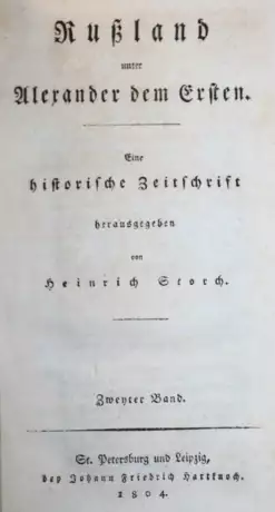 Seltenes Periodikum. - Vorhanden: Lieferungen 1 (Juli-Aug. 1803), 2 (Sep.-Okt. 1803), 3 (Nov.-Dez. 1803), 4 (Jan. 1804, doppelt), 5 (Feb. 1804), 6 (März 1804, doppelt), 10 (Juli 1804), 12 (Sep. 1804). - Die Kupfer zeigen eine Karte des "Südlichen Theils des Russischen Amerika" (gefalt.) und eine Münze (verso u. recto). - Tls. breitrandig u. etw. fleckig, Lieferungs-OU mit eingeb.