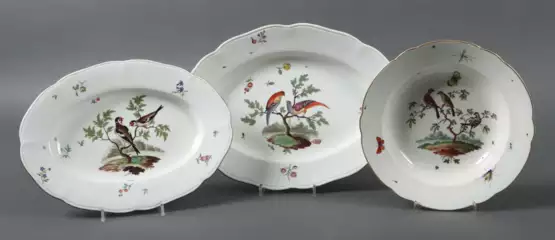 Lot 902 | Suppenteller und 2 Ovalplatten mit Vogelmalerei Frankenthal, 1774-1781…