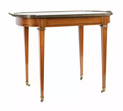 Lot 483 | Tablettwagen 20. Jh., spitz zulaufende Vierkantbeine mit Lenkrollen, d…