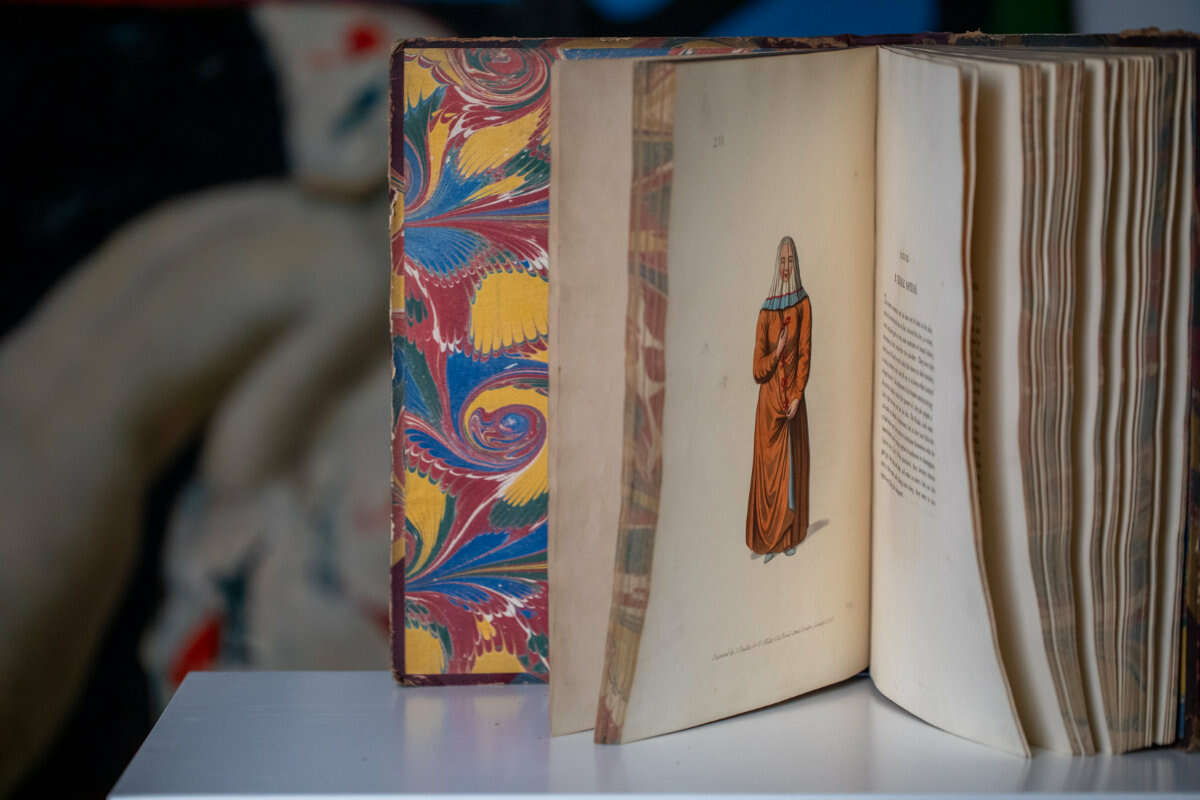 With Descriptions in English and French, London: W. Miller 1803, preface, table of contents, 73 full-page hand-coloured dot engravings by J. Dudley with explanations in two languages, ex libris 'Free Public Library Wigan, Winnard's Bequest', leather spine and library signature, 37 x 27 cm, cover significantly rubbed, minimal staining inside