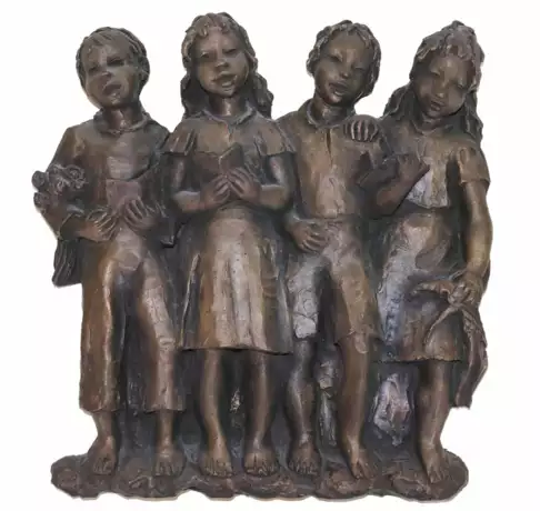 (1902 Karlsruhe - Pforzheim 1991). Singende Kinder. Bronzerelief. 41,5 x 42 x 9 cm. Unt. re. monogr. Verso mit Hängedraht.