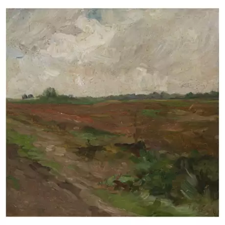 Estate stamp, inscribed, and label of the Galerie Herold, Hamburg verso. Oil study on cardboard. 36.5 x 37 cm. Restored. Minor damage to frame (54 x 55 cm).