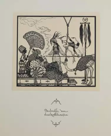 Vorhanden: Der Pascha von drei Rossschweifen, Freundliche Erscheinung, Die Prinzessin am Gartenteich, Der magische Teppich. 3 Holzschnitte mit dem Monogr. im Stock, die Unterl. jwls. mit dem Titel. - Eines der Textbl. etw. fleckig.
