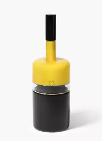 Entwurf 1989. In Incalmo-Technik verschmolzenes, gelbes, schwarzes und farbloses Glas. Im Stand signiert "venini 90 Sarpaneva" (graviert). Herstelleretikett. H 31 cm.