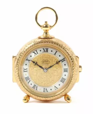 Lot 1231 | Tischwecker Mitte 20. Jhr., Marke Imhof Trianon, Messing, 1 Fuß besch.…