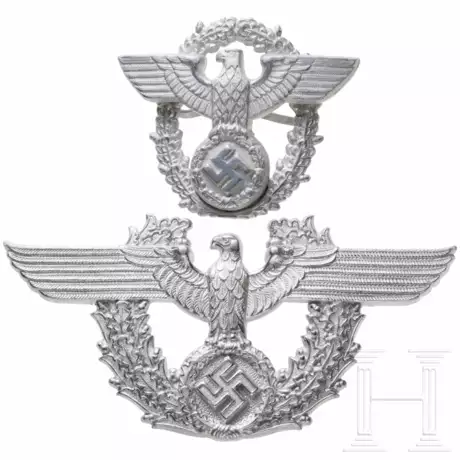 Lot 11747 | Two Police eagles for the ammunition pouch and the visor cap, mint