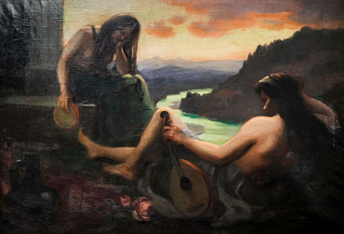 Allegorical scene, oil on canvas, 110 × 160 cm canvas dimensions, restored, retouched,