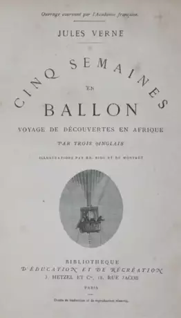 Fleckig u. gebräunt, Vors. mit repar. Einriß. - ╔Dabei: Ders.╗ De la Terre a la Lune trajet direct en 97 heures 20 minutes. Ebda. (ca. 1870). - ╔Glaisher,J. u.a.╗ Voyages Aeriens. Paris, Hachette 1870. - Zus. 3 Bde. - (B)