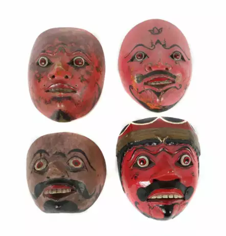 Lot 2617 | Vier Theatermasken Jakarta, Java, Indonesien, 1. Hälfte 20. Jh., Holz,…
