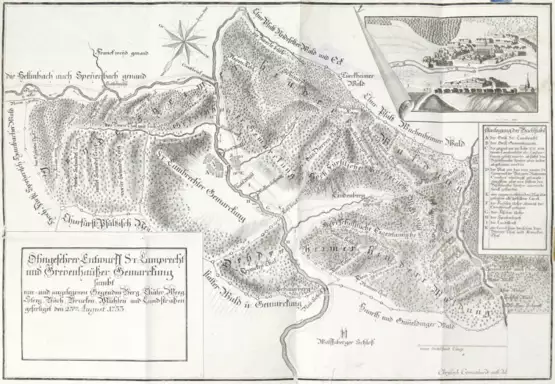 I. VD 18, 1438888X-001. Sehr seltene einzige Ausgabe. - Betreffend Grenzstreitigkeiten zwischen dem Bistum Speyer und dem Kurfürstentum Pfalz. - Verso Falttafel (mit Karte u. kl. Ansicht) mit Tintenfleck. II. VD 18, 10647473-003. - Blattränder tls. fleckig. - Exlibris.