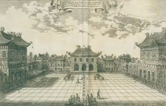 Cordier I, 37. Lipperheide Le 5. Erste Ausgabe. - Laut Tafelverzeichnis fehlt fehlt die Abbildung eines kalmukischen Tartars zur S. 162. - Ohne hint. flieg. Vors. Tls. stärkere Gebrauchssp. Gebräunt u. fleckig (tls. stärker), tls. angerändert, stellenweise Randläsuren.