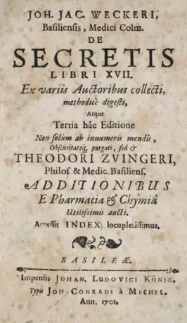 Blake 483. Neu 4294. Duveen 613. Ferchl 569. Ferguson, Books of Secrets I, 13-16. Rosenthal 891. Dritte Ausgabe des erstmals 1582 erschienenen und vielfach aufgelegten sowie übersetzten Werks. - Die Holzschnitte mit Versuchsanordnungen, geometrischen u. magischen Figuren. - Zu Beginn kl. Wurmgang, wenig gebräunt.