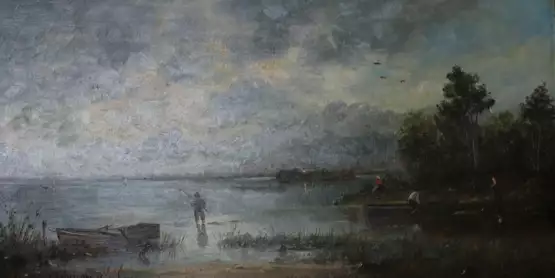 (1926-2017). Chiemsee. Blick auf die Fraueninsel. Öl auf Leinwand, unten links signiert. Ca. 19,5 x 38 cm.