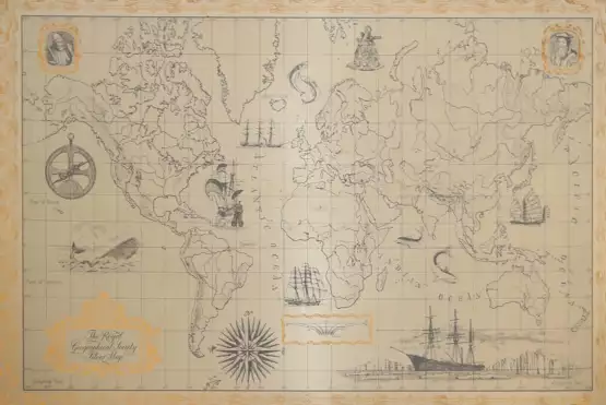 The Royal Society Silver Map. Druck auf gest. 925 Silber, ca. 1976. Ca. 36 x 55 cm. Unt. re. gest. Unter Glas gerahmt (nicht ausgerahmt).