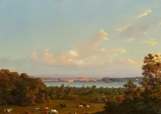 Lot 1178 | Wilhelm Riefstahl. View from the 'Kuhbrücke' Bridge near Neustrelitz across Lake Zierker to the Town and Town Church