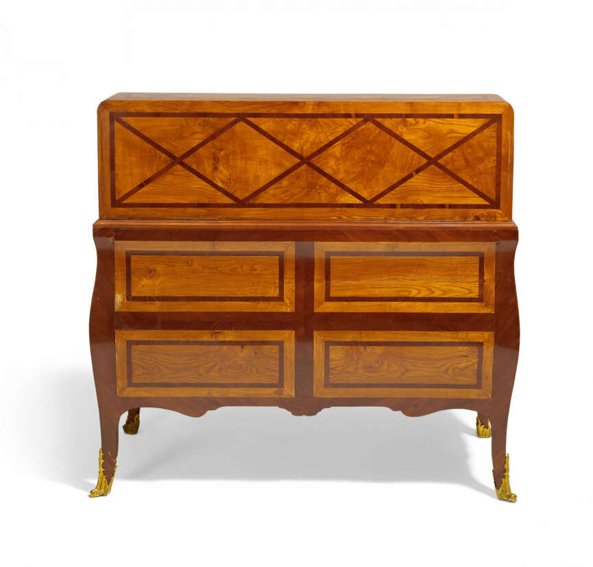 Technique: Kingwood, rosewood inlaid and polished. Fire-gilded bronze fittings.