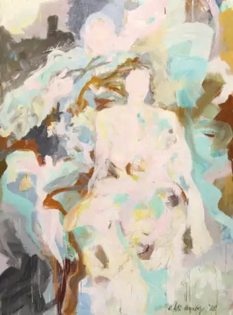 Beim Friseur. Öl auf Leinwand. Unten rechts signiert und datiert (19)88. Ca. 159 x 119 cm. Gerahmt.