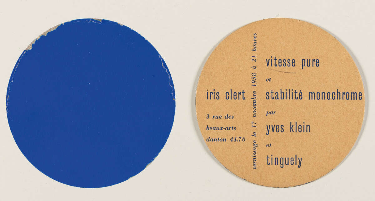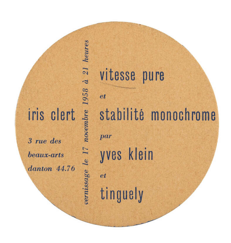 Lot 4270 | Yves Klein. Vitesse pure et stabilité monochrome par Yves Klein et Tinguely (Einladung zur Ausstellung in der Galerie Iris Clert, Paris, November 1958)