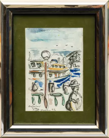 Aquarell und Tusche/Bütten. Undeutl. sign., bez. und dat. (19)92. Rückseitig dat. "Okt (19)92". 15 cm x 20 cm. Rahmen.