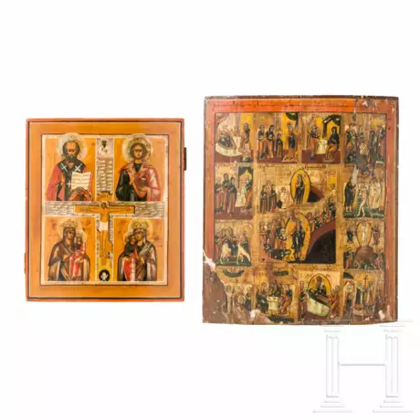 Lot 7655 | Zwei Ikonen: Große Festtagsikone und Vierfelderikone, Russland, 19. Jhdt.