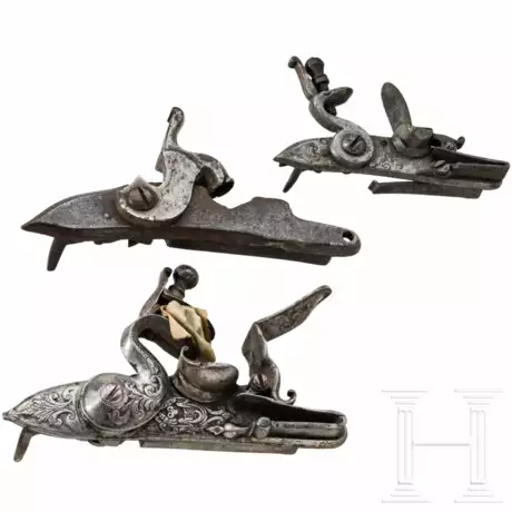 Lot 6491 | Zwei Steinschlösser und ein Perkussionsschloss, 18./19. Jh.