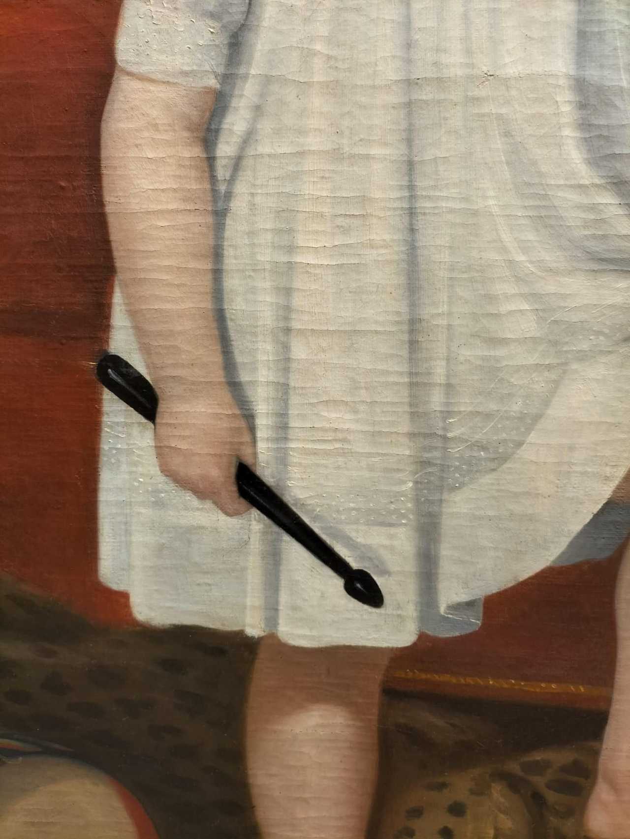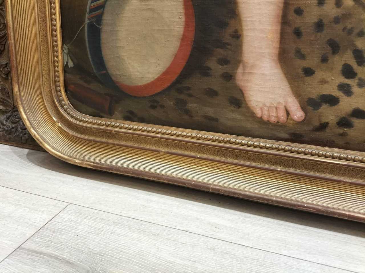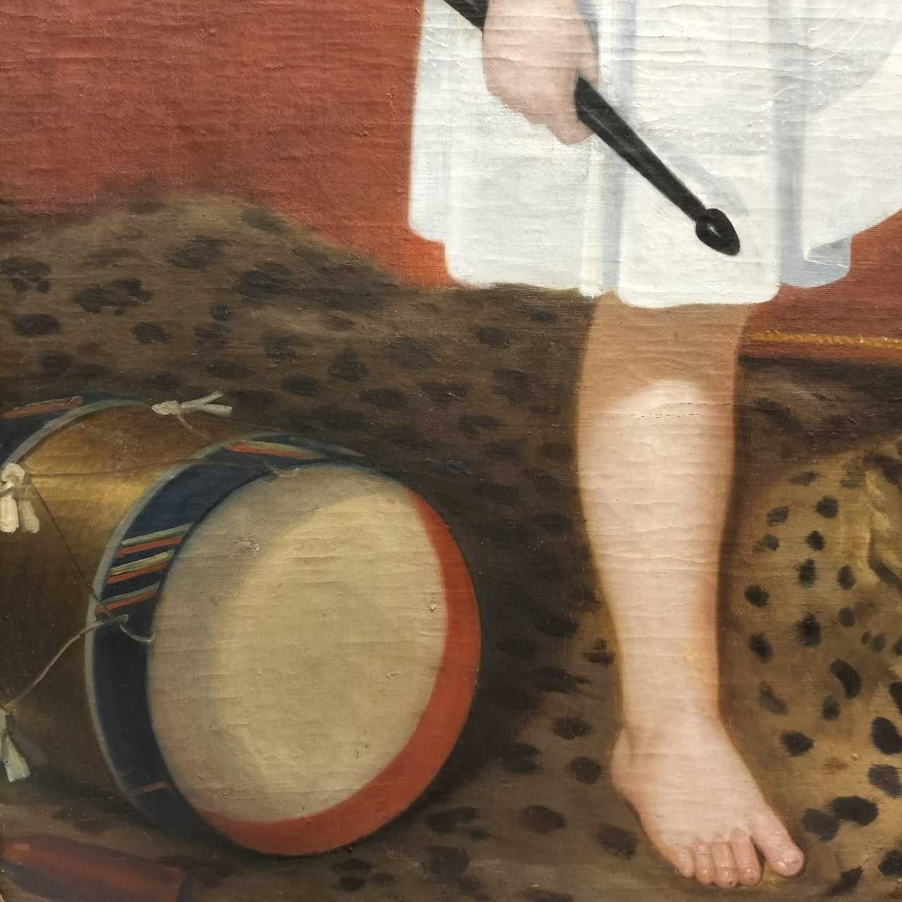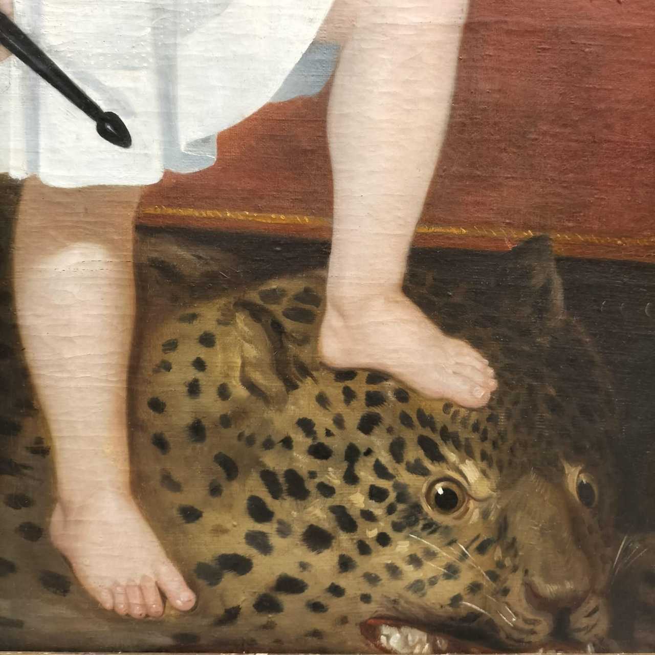 18th Century Oil Painting of Child with Tambourine Walking on a Panthera 18th century