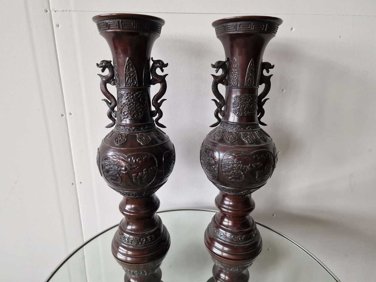 A pair of beautiful Japanese bronze vases Bronce Asian Art 19th century