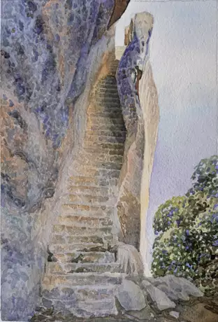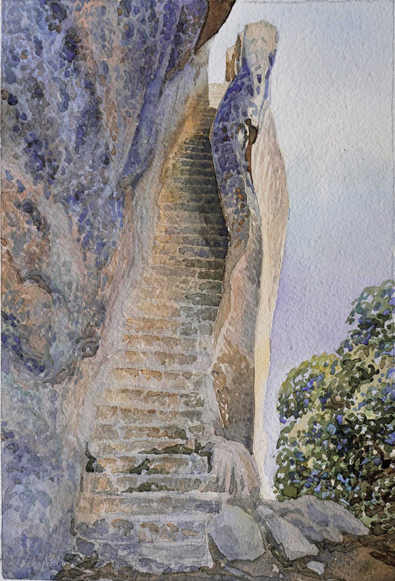Лестница в небо. Papier Aquarelle Réalisme Paysage de Crimée Russie 2017