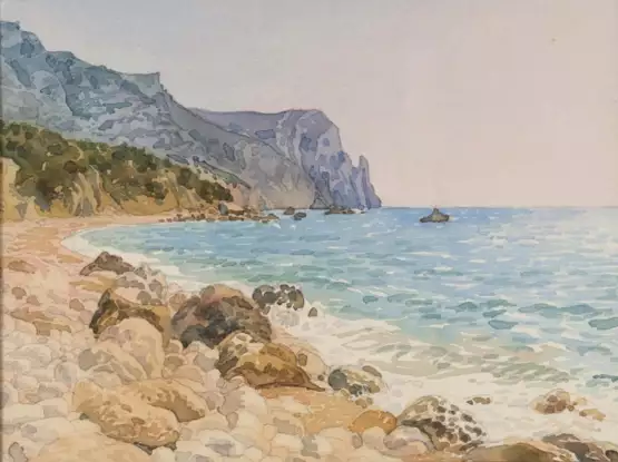 Золотой пляж. Papier Aquarelle Réalisme Paysage de Crimée Russie 2004