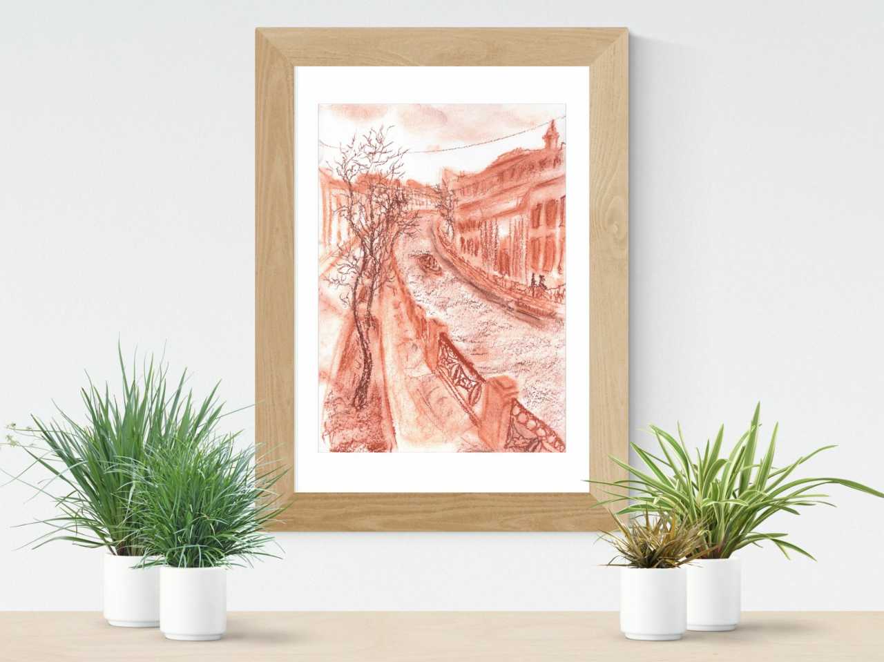 Канал Санкт-Петербург Papier Sanguine Impressionnisme Paysage urbain Russie 2022