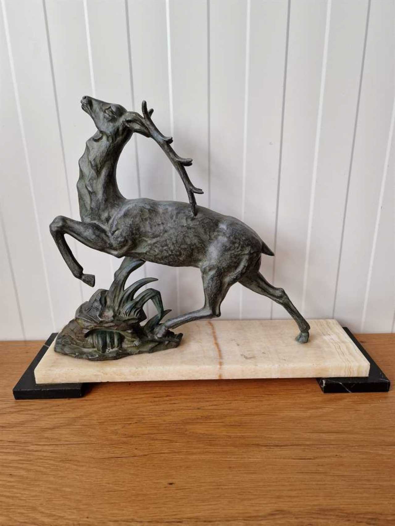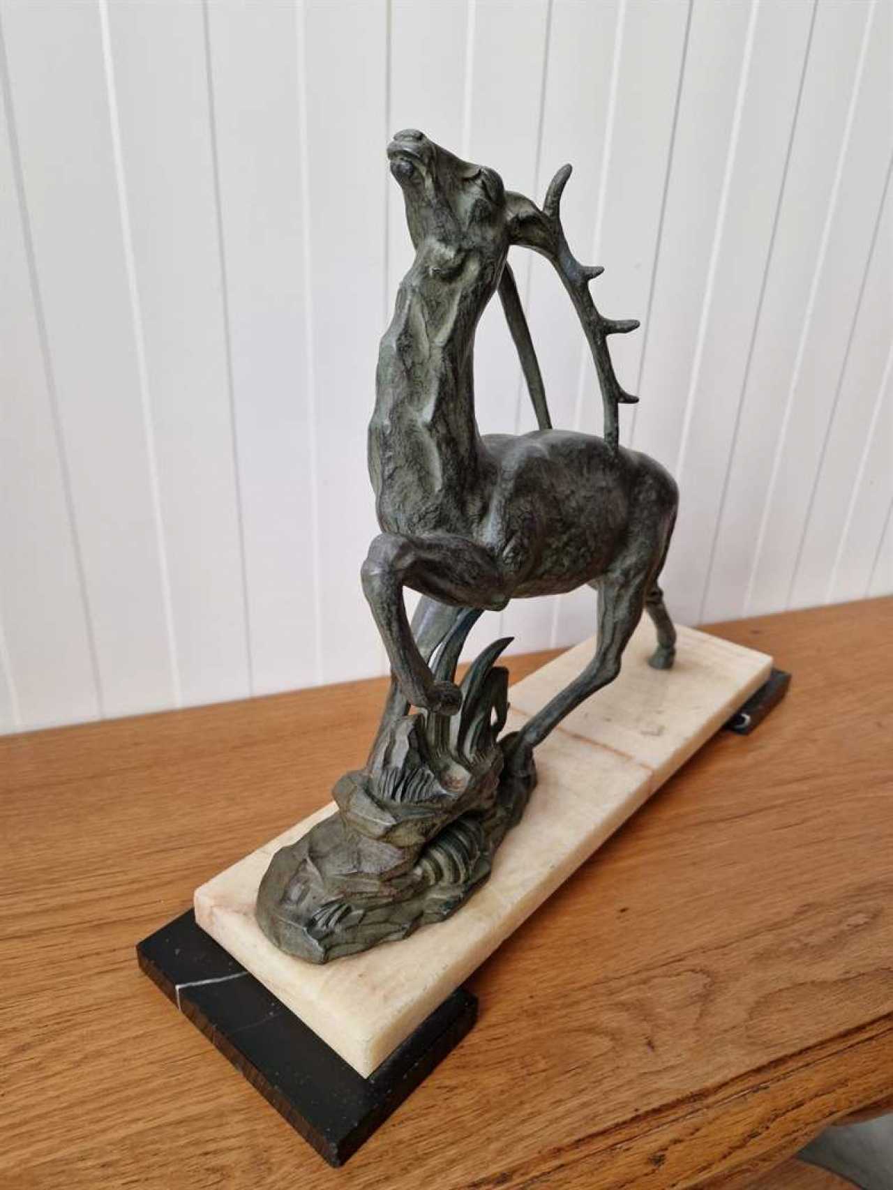 Art Deco figure DeerMetal, marble.France.1930s.Height 35cm; length 45cm; width 13 cm