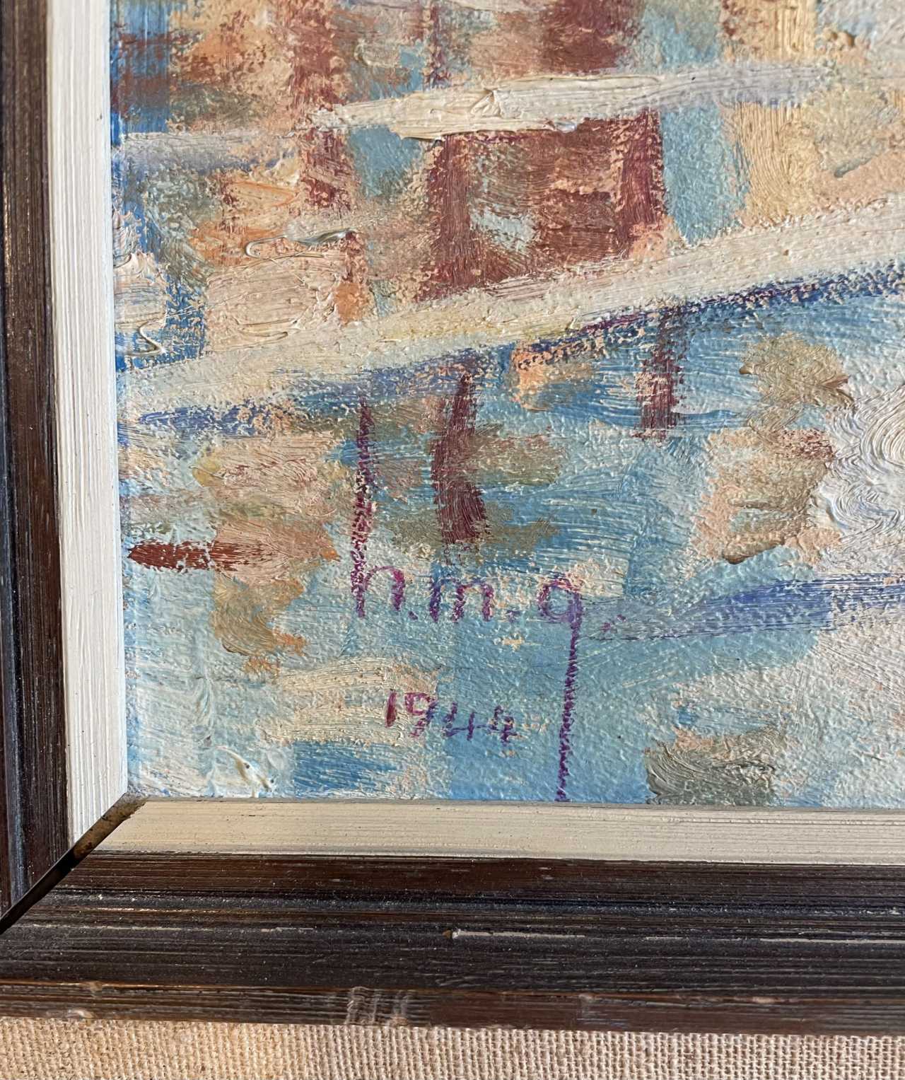Attribué à Hortense Mattice Gordon (Canadienne, 1887–1961), huile sur plaque, 49 x 57 cm, signé HMG 1944 dans le coin inférieur gauche.